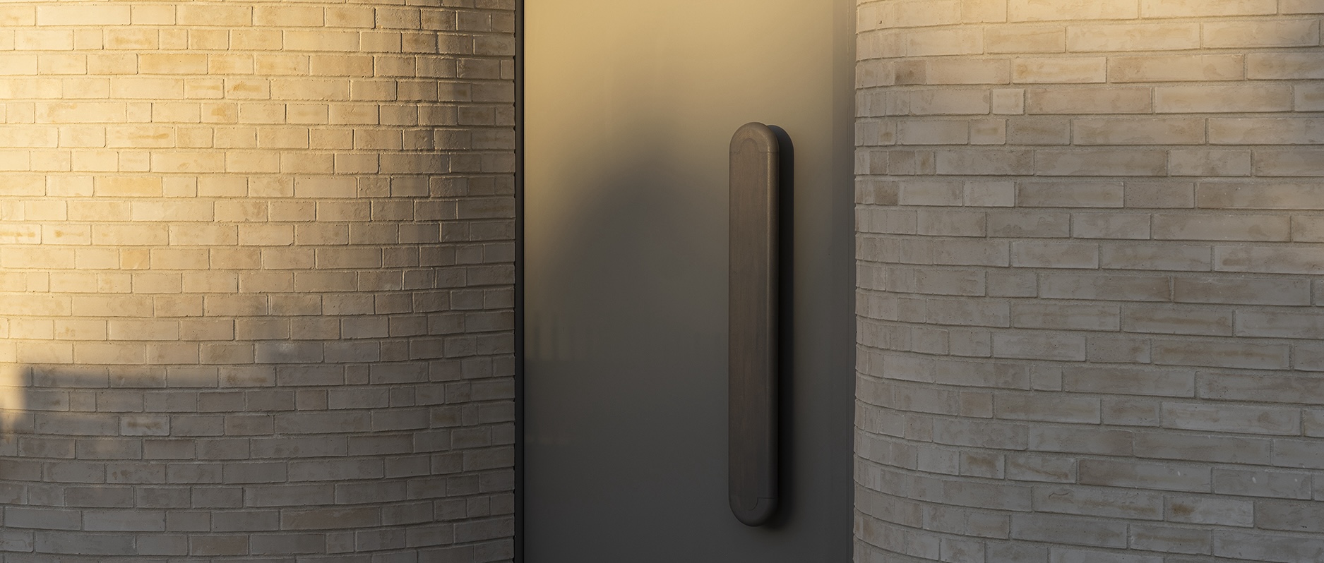 Dual softened curves provide depth to the façade and lead the eye to the Entry & double height space beyond. Early morning light is gently welcomed deep into the home through this elevated aperture.