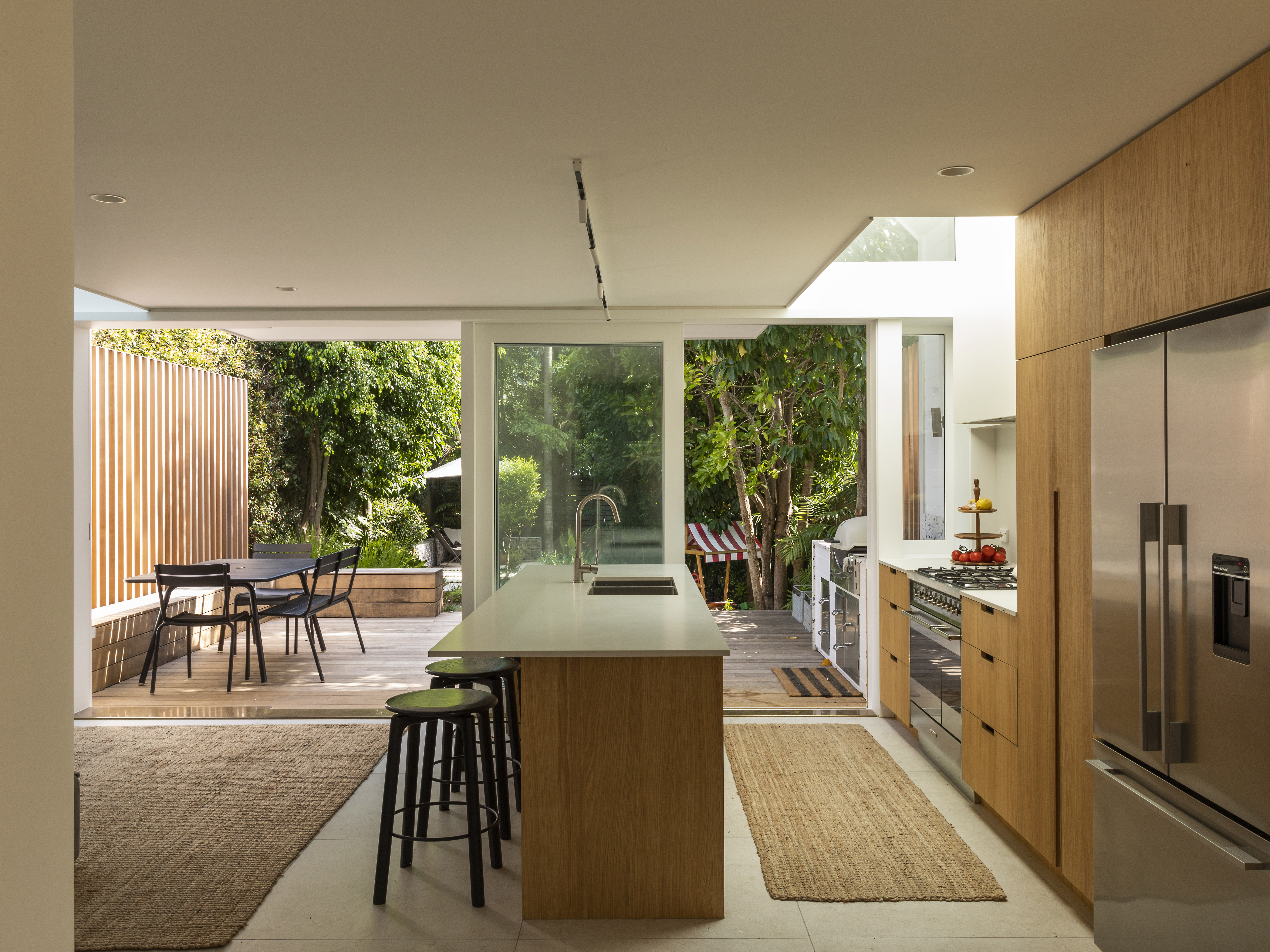 The design response was to maximise the permitted bulk across the narrow site and to carve out volumes to allow for natural light to wash into the living areas, circulation spaces and bathrooms.